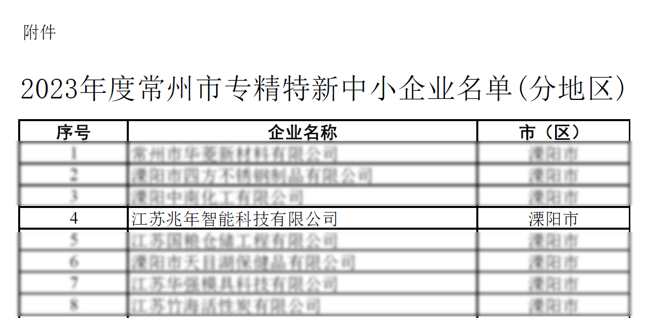 2023年,江蘇兆年響應常州市政府號召,積極申報市級專精特新中小企業(yè),經(jīng)溧陽市工信局推薦、形式審查、專家評審和網(wǎng)上公示等程序,終獲評”2023年度常州市專精特新中小企業(yè)“。