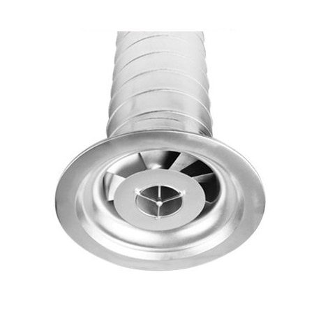 用于安裝在與天花板齊平或自由懸掛的高架大廳,特別適用于較大的熱負(fù)荷波動, 出風(fēng)口包括一個帶有成型出口的圓形殼體,一個芯管和固定在芯管中的的扭轉(zhuǎn)葉片。送風(fēng)方向可從地平線(冷卻模式)到垂直(加熱模式)的無級調(diào)節(jié)